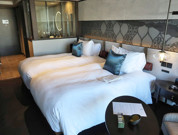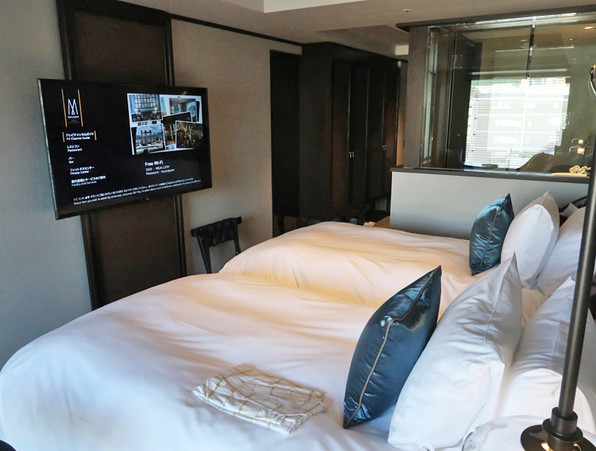 ●部屋も、シモンズのベッドが入っているけれど必要最小限の広さという感じ。デスクもなく、ノートPCをやっとこさ置ける程度の大きさのテーブルがあるだけ。