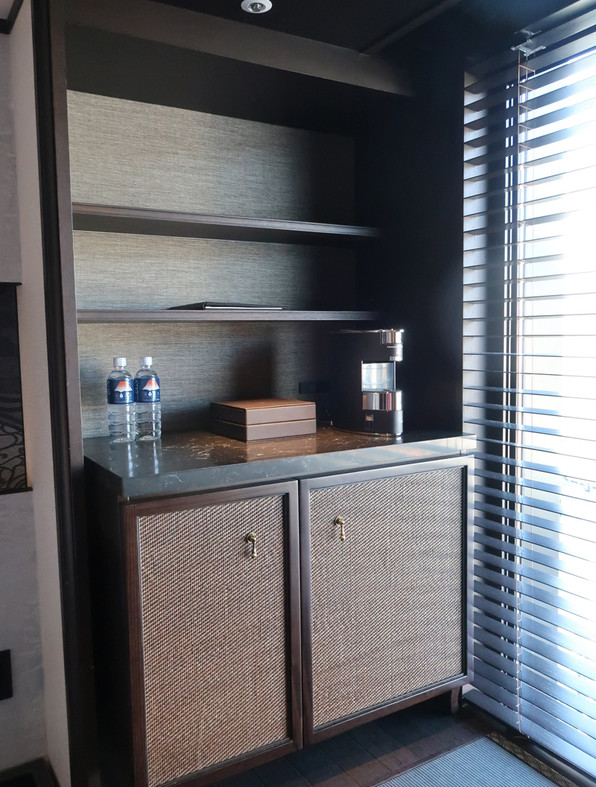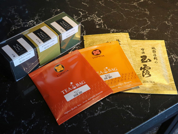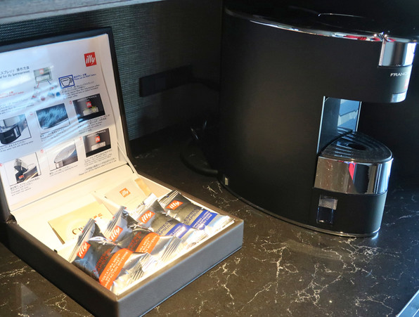 小さな冷蔵庫や湯沸かしポットはありますが、ティーバッグなんかは1階フロント横の「アメニティバー」で欲しいだけ取ってね式です。