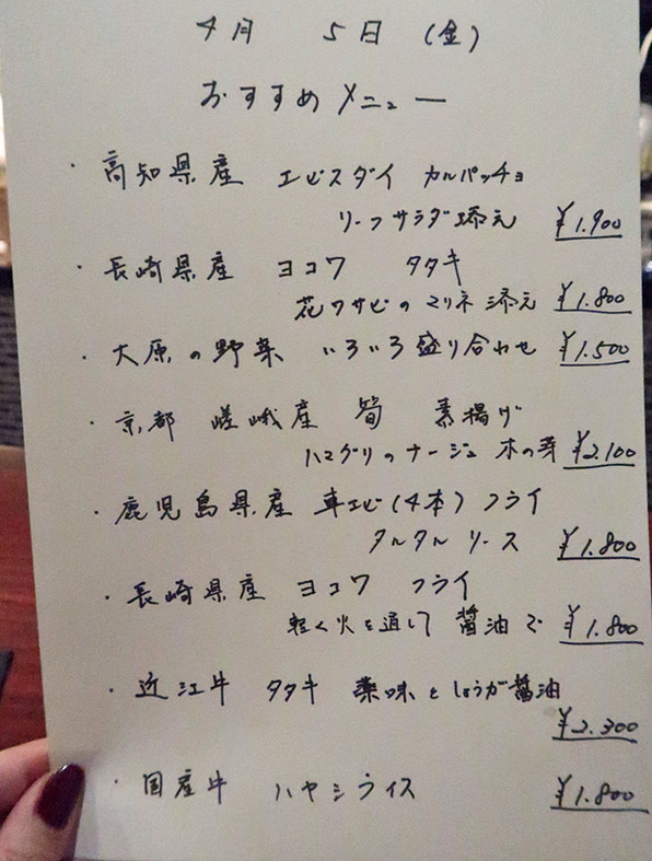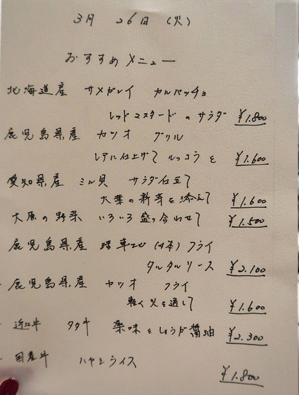 ●グランドメニューの他に、当日のおすすめがあります。また必ず伺います。