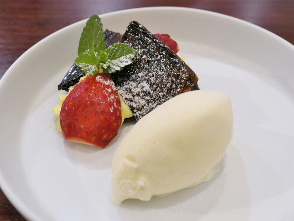●食後はガトーショコラ、クレームブリュレを選択しました。カフェ・クレームと共に。