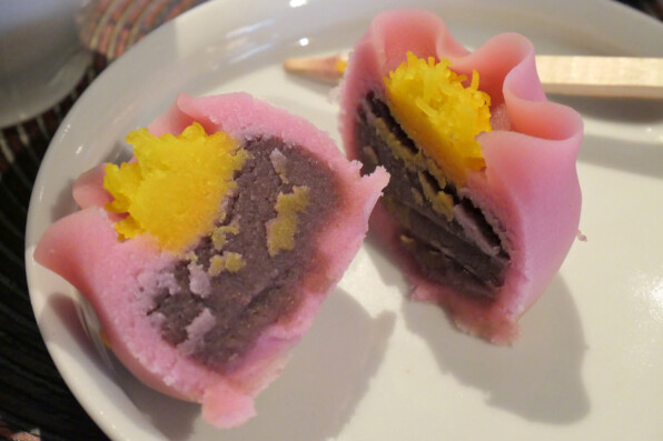 ●「二條若狭屋」さんの「秋風」ういろう、中は白こしあん。桔梗が描かれていて、すてきな秋の風情です。