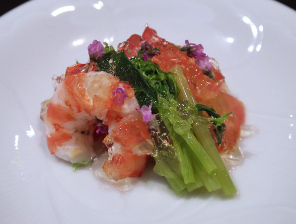 ●フルーツトマトと海老の先付(これは自動的に供されたもの)