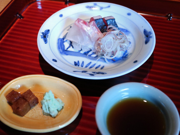 ●味は薄めですから調味どうぞと、山椒オイルやもろみ味噌、五色の塩などが供されます。