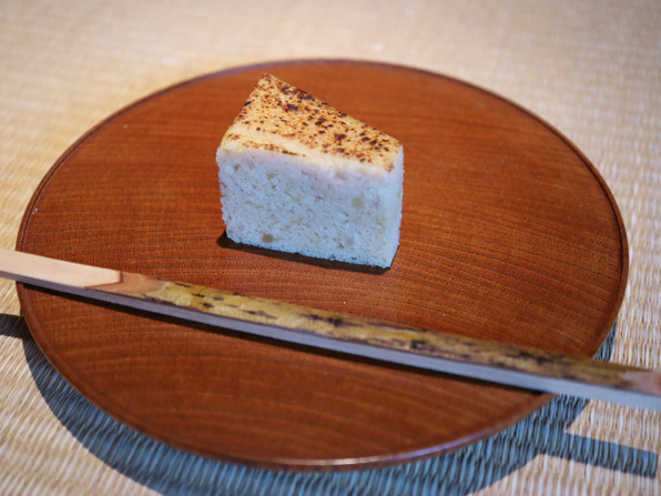 そして食後の甘味の、白味噌とたまご入りのカステラのようなオリジナルお菓子、ちょっと松風みたいで風雅な趣。とても好みでした。