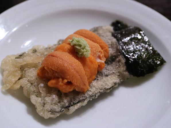 ●海苔の天ぷらにうに、わさび。間違いのない組み合わせ。