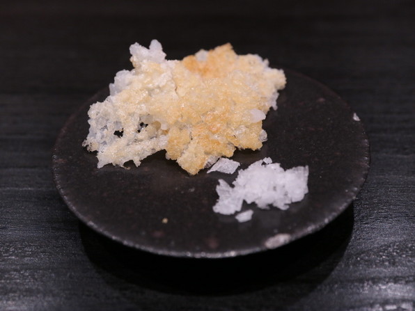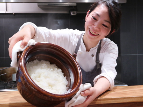 ●8席のカウンターにびっしりお邪魔しましたが、店主の竹内誉裕さん、手が8本あるとしか思えない、ものすごい勢いとめざましい段取りでした。いちいち手間をかけるし、ダブルご飯の後はダブル甘味(アイスクリーム入りの大福とわらび餅)、さらに残ったご飯でおにぎりまでしてくださって、1時間40分ほどで全部出してくださいました。お見事!!とわたしは瞠目で口あんぐり、召し上がった皆さんはお腹いっぱいいっぱいの大満足状態になってくださったと思います。