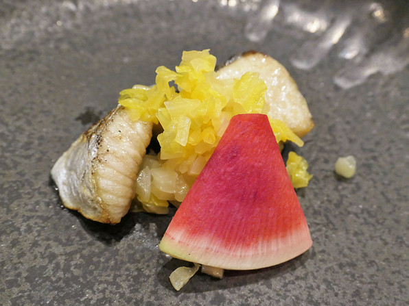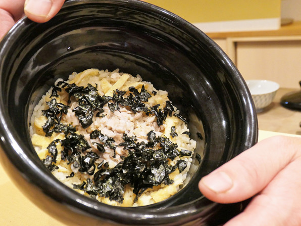 魚の食感すごかった、火の絶妙な入れ方だなあと。みぞれ椀おいしかった、やいとかつおもひらめも抜群に旨かった、最後の白甘鯛のだしで炊いたご飯も感じ入るおいしさでした。