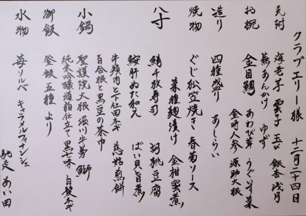 年末最後のクラブエリー、華やかな「日本料理 研野」さんに伺ったのでした✨️✨️