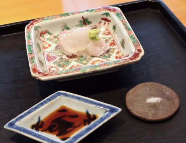 添えられた魚は、うおぜ=えぼだいの塩焼き。