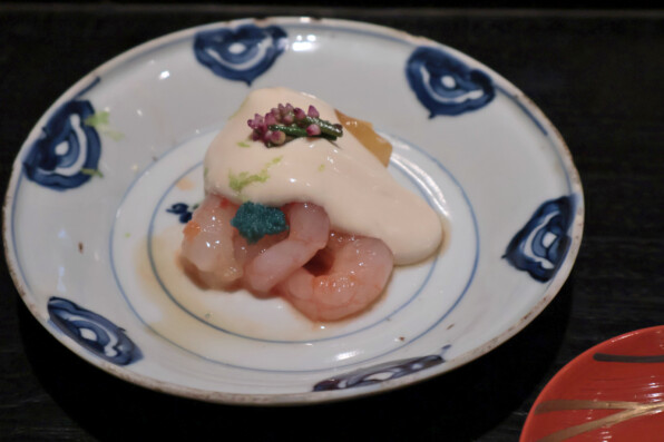 ●甘海老、いちじく、白酢掛け。上に生のとんぶり。