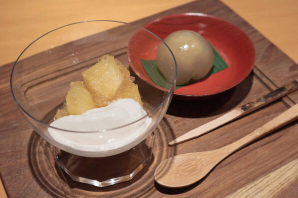 ●食後は、りんごと生姜のあん饅頭、上に栗のせ。