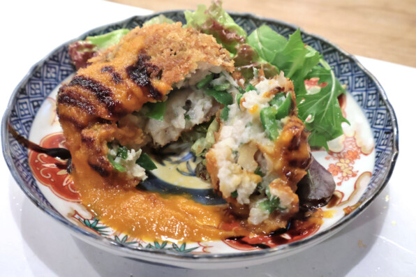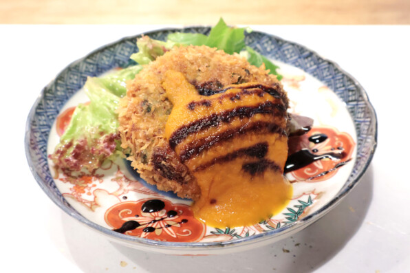 中に、大葉、ピーマンなど香りを添える野菜が仕込まれていて、さらにはさいの目に切ったれんこんがしゃりしゃりとした食感を与えて、粋な感じ。