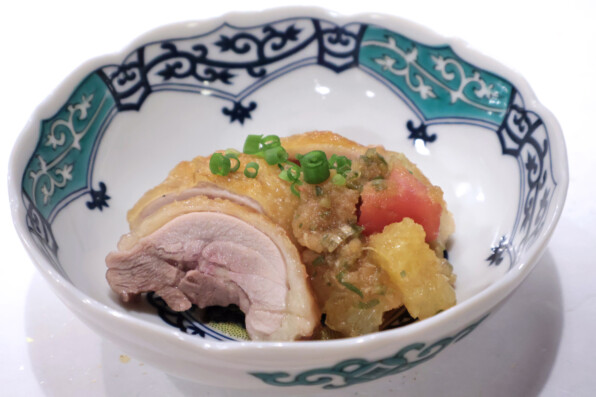 皮目パリパリ、香ばしく塩焼きにした鶏肉を、のせてあるのです。鶏肉のおいしさをストレートに味わえました☆☆☆