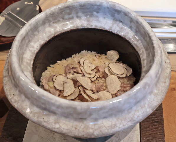 ●すずきの麦飯蒸し。「祇園 川上」さんの復刻料理、名作です。