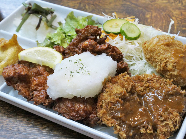 そのスズキさんからレシピも受け継がれたのがこの、唐揚げ定食です。大ぶりの唐揚げが4個。
