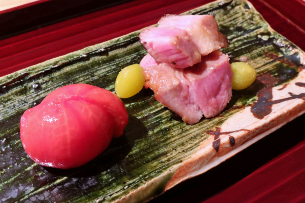 ●岐阜のボーノポークの酒粕幽庵焼き、アメーラトマト