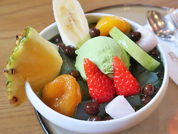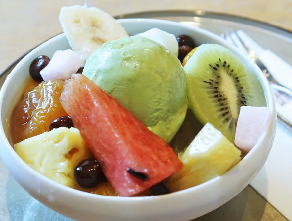 ●抹茶クリームみつ豆、フルーツ盛り盛りで、春先はこんな感じでした。
