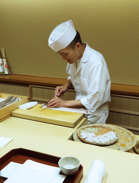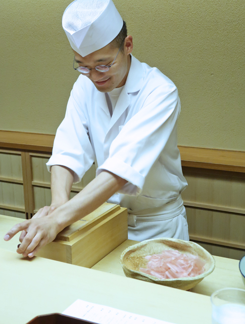 ●カウンターで店主の木山義朗さんだし引き之図。おだしに対する期待がここでぐわーんとふくらみます。