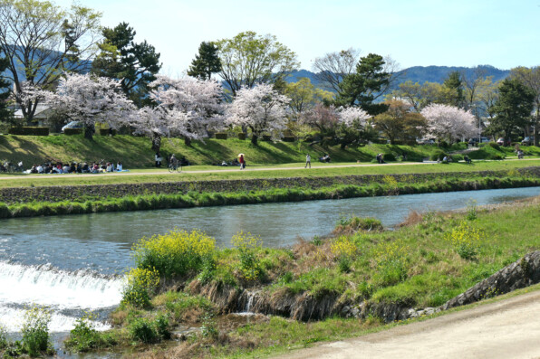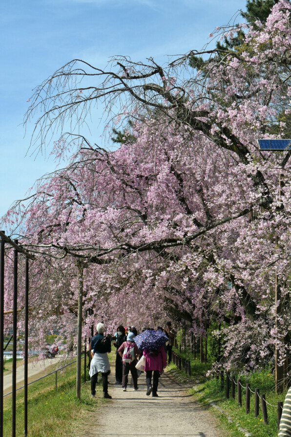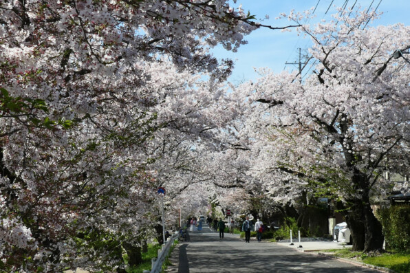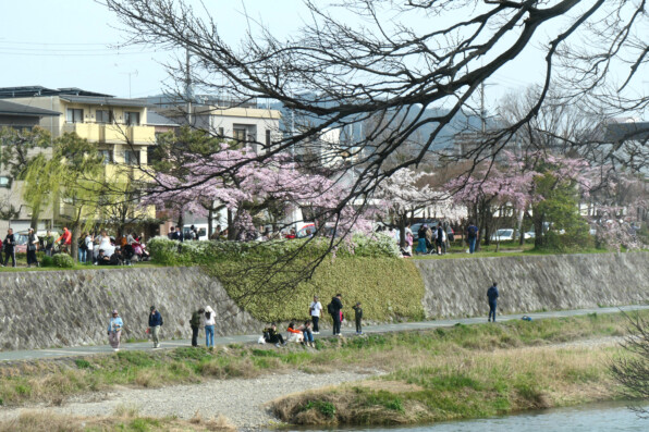 ●クラブエリー@「獨歩」さんの帰り道、「桜がものすごくきれい」と教えられて、少しだけ北に向かって上がってみようと、北大路橋から「なからぎの道」を北上。はじめ枝垂れ桜なのがソメイヨシノになって、もう桜で桜で桜で桜で、視界をさえぎられるほどの桜が圧倒的で、もう少し、もう少しと桜に導かれるままに、上賀茂神社に至ってしまいました。