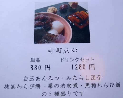 ●これは前にいただいた「寺町点心」。あんみつに、お団子3本に、わらび餅と栗の渋皮煮の、欲深セットね(^o^)(^o^)/