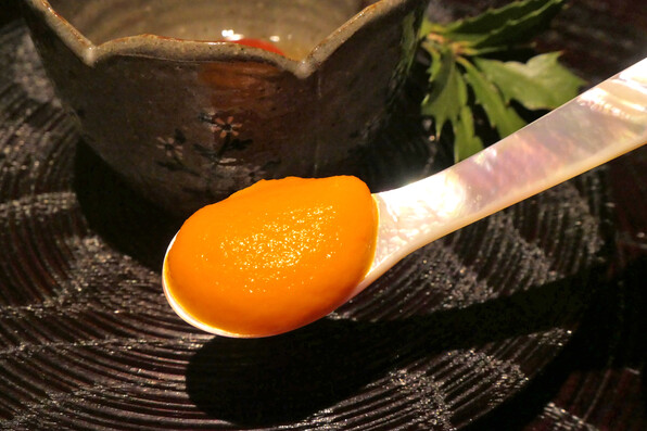 はっさくスープとして出てきました。温製。シナモン、クローヴ、八角の香りが立ちのぼり、スパイス好きにはたまりません。お料理と同様に強い印象を残しました。これもまたしてください<(_ _)><(_ _)>