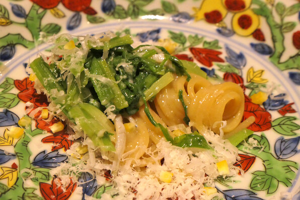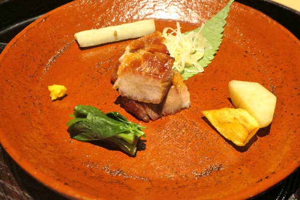 ●焼き物はいつものチャーシュー。味噌床に漬けて焼いたもので、ものすごく味がしみていて旨みたっぷりです。合わされるものが毎月替わって、今月は白菜。少し甘酢漬けみたいな感じで粋な風味を添えていました。