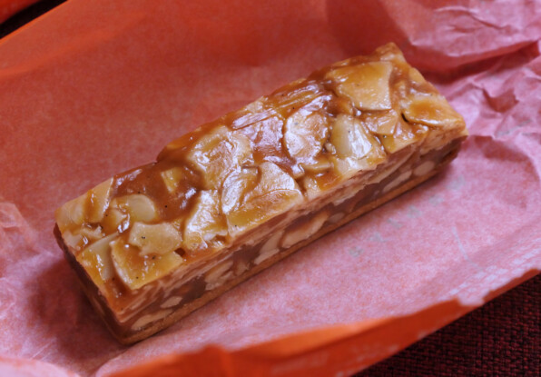 まずプレーンなままで切って味見したので左端が切れていますが、そこからカラメルソースをかけてもらいました。