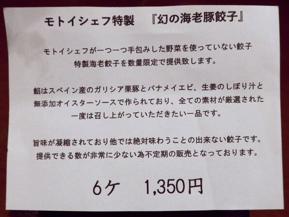 モトイシェフ特製幻の海老豚餃子」。6個 1350円。