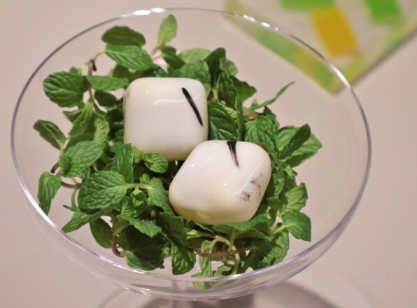 つるむらさきが彩りと食感と香りを添えました。
