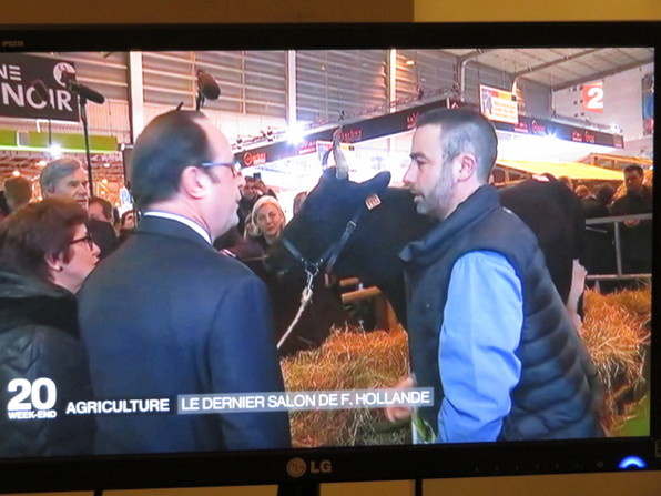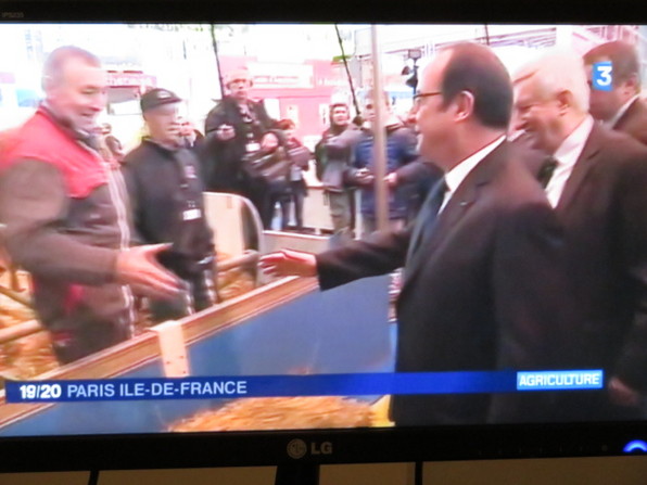 初日は大統領が来場して、TVカメラを意識しながら農民や来場者と握手し、差し出される食べものやワインをにこやかに試食、試飲することもよく知られています。これが次の選挙戦にも響くのだとか。今年は任期がもう終わるオランド大統領が来場した様子が何度もTVのニュースで映し出されていました。
