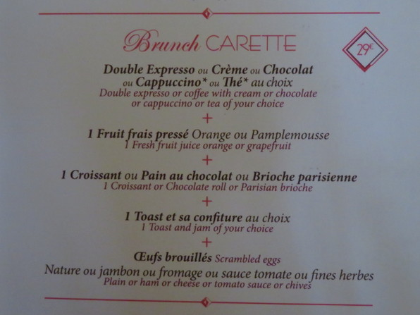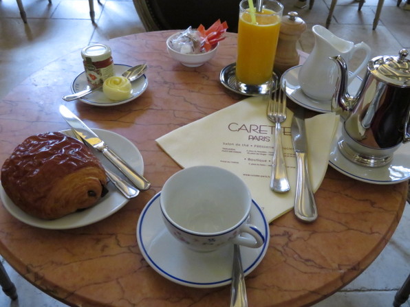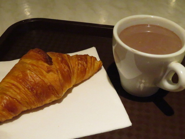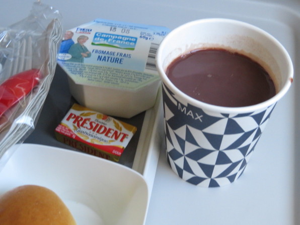 ●到着1時間半ほど前に、朝食。飲み物はカフェか紅茶、ショコラショーと聞いてくれるのでもちろんショコラショーです。