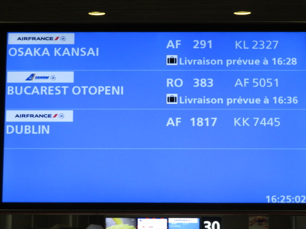 いつものプレエコ、今回は22万円で買った、席は12L、ヒッポちゃんの見える席と決めています。初めて飛行機に乗る子供みたいに外見て写真撮ります。好きなんだもん♪ 離陸も着陸もその瞬間撮っておきます。記録にもなるし。荷物受け取りを待ちながら、カメラ内の時間を日本時間→フランス時間にします。これ忘れずに必ずやる。