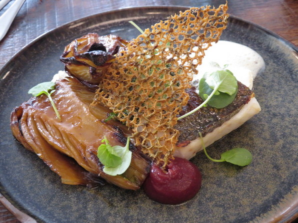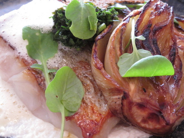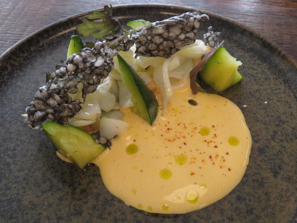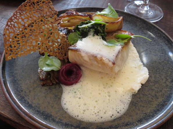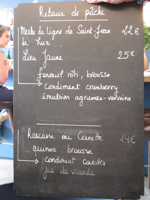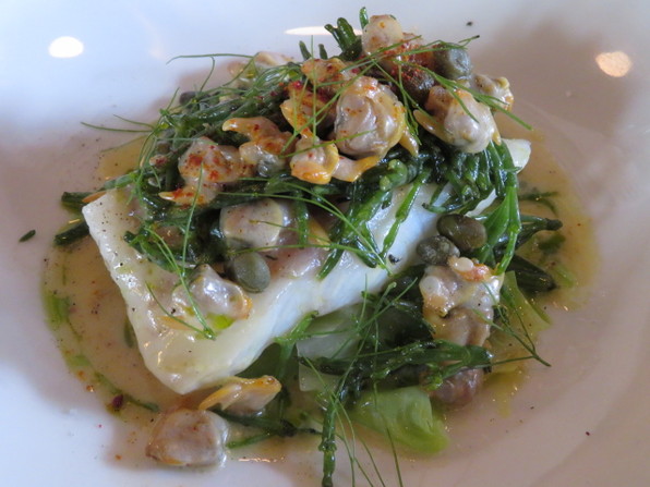 ●わたしはLieu jaune.メルルーサです。あさりに似たcoquesがたっぷり上にのっています。サリコルヌはおかひじきみたいなものと言ったらいいかしらん、沼に生えるものらしいです。