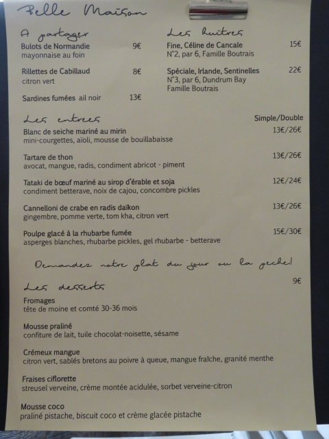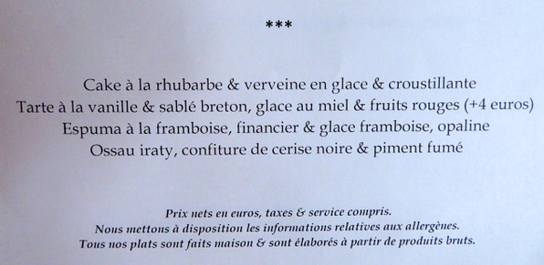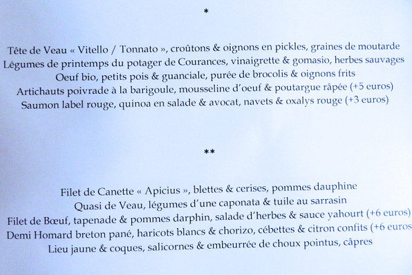 ●前菜・主菜・デセールで47ユーロのプリフィクスコースを選択しました。