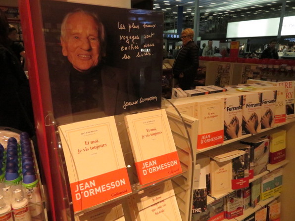 本売り場でジャン・ドルメッソンさんの本を立ち読み(ごめん)、ピエール・ルメートルさん(「悲しみのイレーヌ」の人)もいい場所にあるが、これは前に怖かったのでもう読まない。