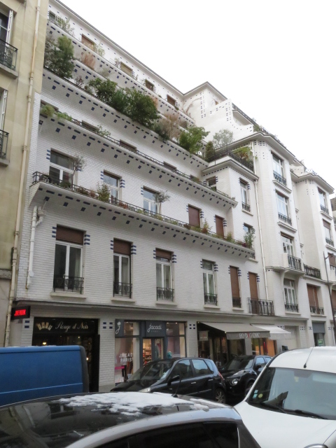 ●ヴァヴァン通り26番地の白いタイル貼りの、上が階段状になった建物。1914年に完成したものとのこと。100年たっているのにこのモダンさ、なるほどすてきだわ(^o^)(^o^)/
