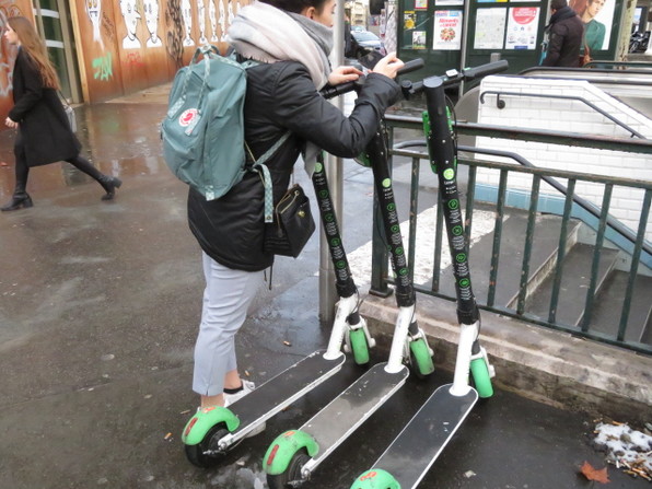●最近急に増えたと思う、ヴェリブ(自転車)ではなくて、なんていうの? ハンドル付きの、すーすーすべるスケートボードみたいなの、あっちこっちに乗り捨ててあるの、回収大変と思う。車道走っているの見ては、危なくないかなあなんて思います。