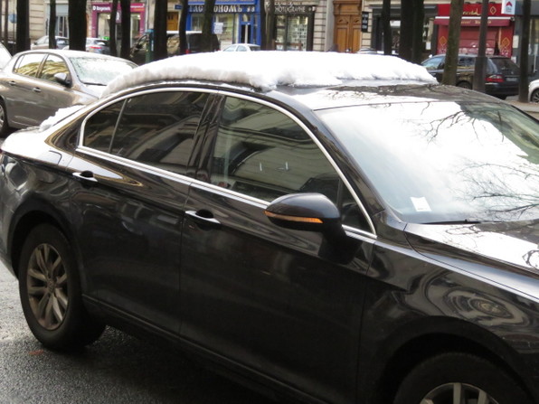 ●昨晩降った雪が残っている寒い朝。車の上に積もっています。
