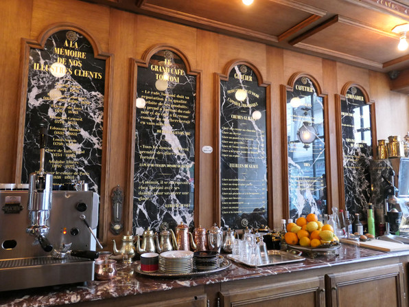 となりのカフェのテラスでカフェ・クレームを飲んでしばりゆっくり。