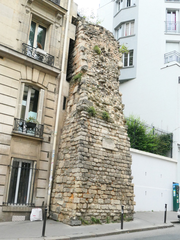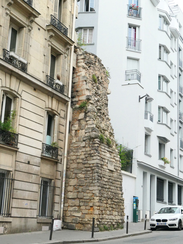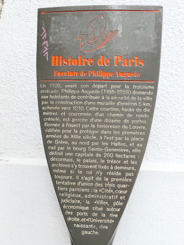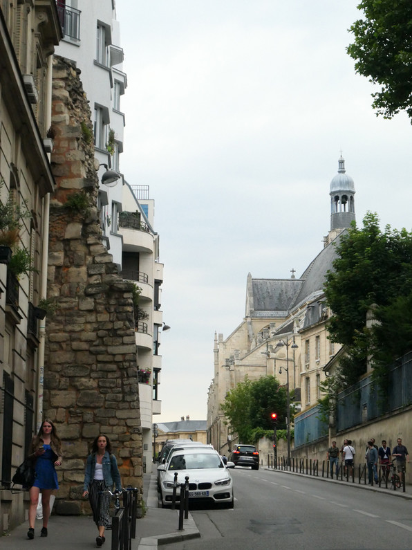 ●800年以上前から残る、フィリップ・オーギュストの城壁跡。カルディナル・ルモワーヌ側からちらっと見えただけで、これだー\(^o^)/とすぐにわかりました。こんなのがパリの何箇所かに残存するのがすごいなあと思います。意図的に残したというのではなく、堅牢すぎて壊すのも大変なうちにマダラ状に残ったというのが本当のところらしいですが。