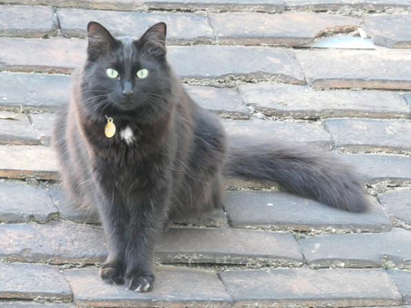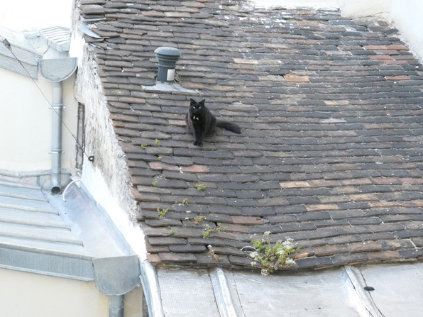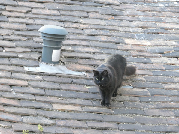屋根の上をのしのし歩く黒猫\(^o^)/