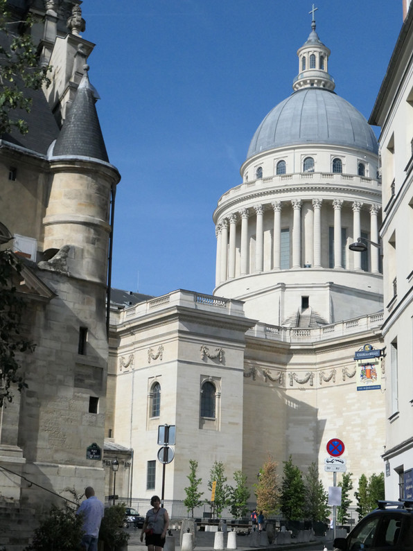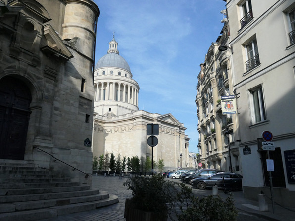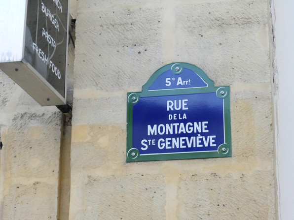 ●坂道が多いけれど、坂道は街にニュアンスを与えて素敵なもんだとパンテオン裏~サンテティエンヌデュモン教会の間の道を、よいなよいなと思いながら歩きます。サントジュヌヴィエーヴの丘、と思っていたけれど通り名は「Montagne」=山なのね。この界隈、広場と道の名前が、ほんの50センチほど歩いただけで目まぐるしく変わります。