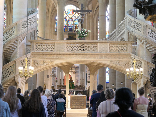 ●再び坂道を上って、美しいサンテティエンヌデュモン教会の中へ。日曜日の礼拝をやっていて、いちばん後ろの席でわたしもミサの様子を見せてもらいました。