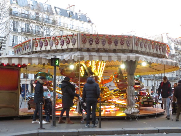 ●メトロ駅前にある小さなマネージュ(メリーゴーランド)、平日は開店休業状態だなあと眺めていたのだけど、日曜は子どもがみっちり乗って大喜びしているのを親が見守っていて、自分の子が回ってきたら手を振ってるの、よい眺めだなー(^o^)(^o^)と。