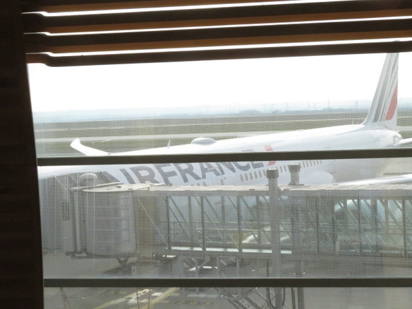 夏はいつもグラン・デパール(ヴァカンスに向けての大量の移動)と重なって空港が激しく混み合いますが、冬に帰って来る時は大抵ガラガラ、今回もヴィリエからタクシーで30分で空港へ、空港に着いてからも20分かからずチェックインや検査が済んで、ゆったり余裕がありました。空港内はほんと高いと思いつつペリエを買って飲みサラダとラザーニュを食べて(味は・・・(-_-;)(-_-;))、ロンシャン詣でをして他にメゾンHとかキラキラスワロフスキーを眺め、そして本を見て過ごしました。