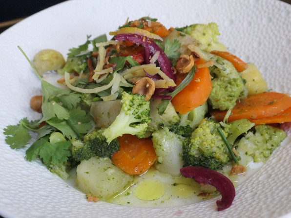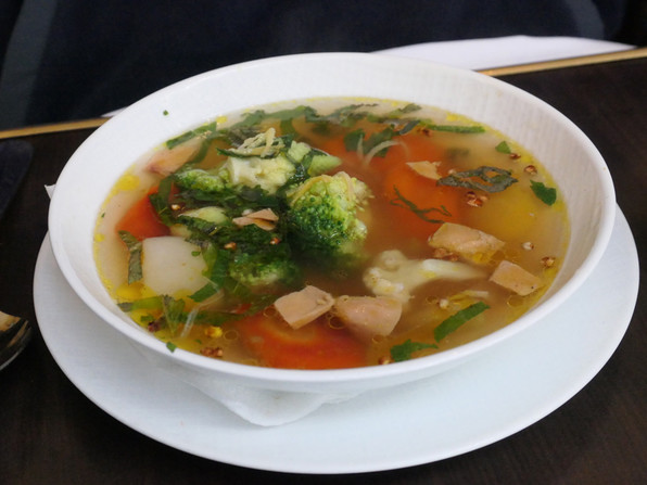 ●一緒に行ったYさんは鶏コンソメスープに鱈。いずれも野菜たっぷり。ストレートにおいしい料理よいわ\(^o^)/\(^o^)/☆☆☆ Yさんに感謝。