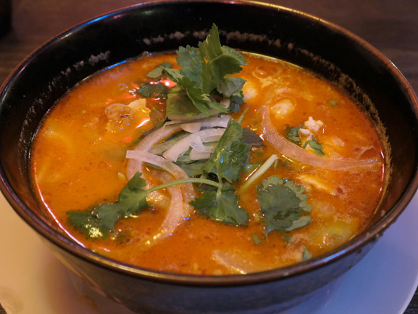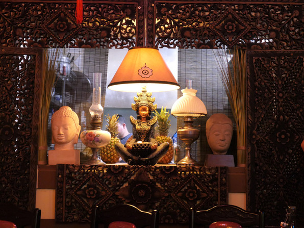 ●日本趣味ののれんがお店の風情と調和していないけれど、おみやげにでももらったんだろうなあ。