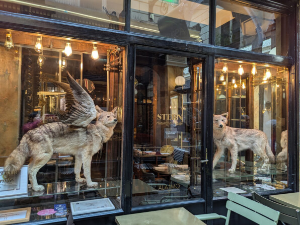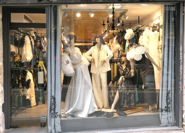 ●アパレル街なのです。それも、瀟洒なパリ✨️というよりは、えーっと、どなたがお召しになるのかあああ😂😂?というような服屋さんが軒を連ねます。