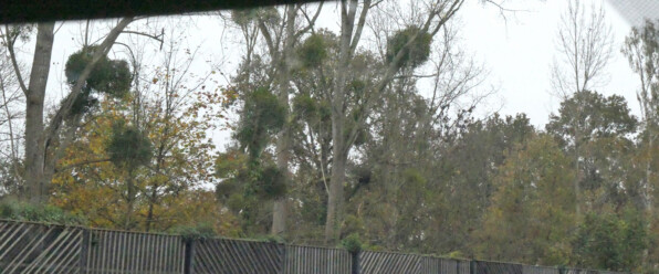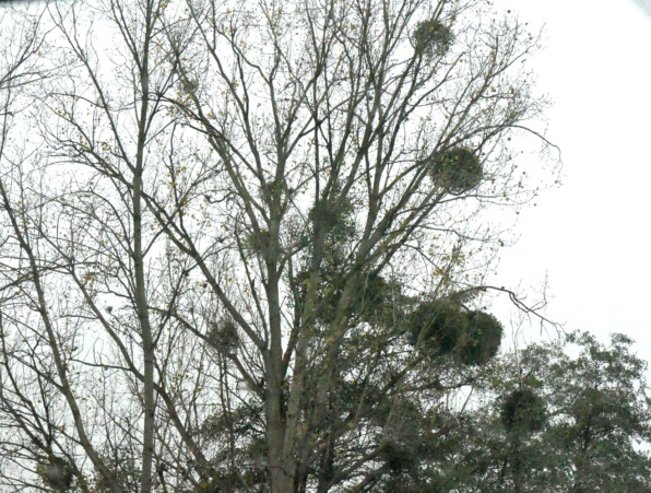 木の上に丸いポンポンのようにくっついている、やどり木、 多いなあと。